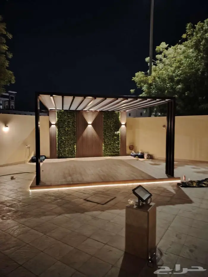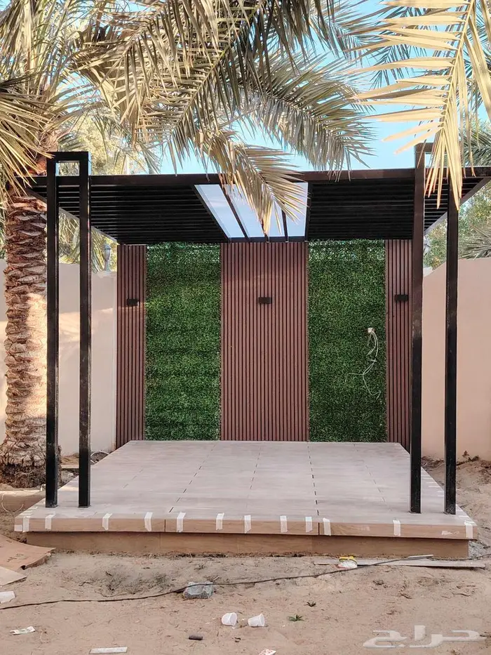 جلسات خارجية شلالات نوافير عشب طبيعي عشب صناعي بديل خشب عشب جداري