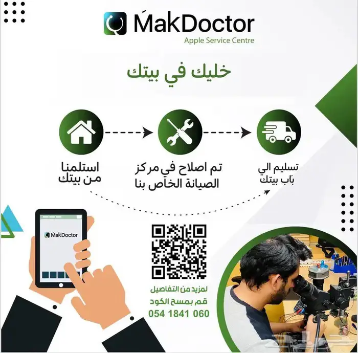 إعلان خاص: خليك في المنزل، نستلم جهاز آبل الخاص بك، ونصلحه في مركز الخدمة لدينا، ونعيده إليك. لحجز موعد، تفضل بزيارة www.makdoctor.com