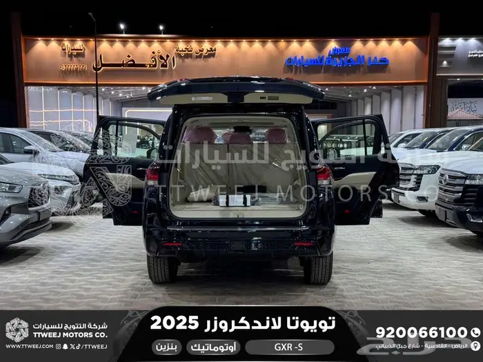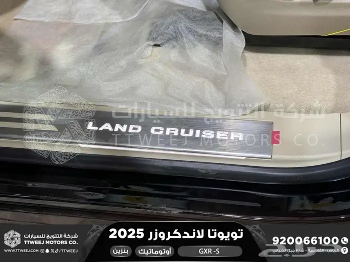 2025 شـركـة الـتـتـويـج للـسـيـارات - حي القادسية - شارع جبل الذبياني *** WWW.TTWEEJ.COM *** + + + + + + + + + + + + + + + + + + + + + + + + + + + + + + + + + + + + + + + + + + + + الشركة الصانعة : تويوتا نوع السيارة : لاندكروزر فئة السيارة : GXR-S موديل السيارة : 2025 عداد السيارة : جديدة نوع الوقود : بنزين وكيل السيارة : وارد عبداللطيف جميل الألوان المتوفرة : (أسود, فضي, أبيض ) + + + + + + + + + + + + + + + + + + + + + + + + + + + + + + + + + + + + + + + + + + + + * متوفر التقسيط و التأجير المنتهي بالتمليك عن طريق ((بنك الراجحي و بنك الاهلي و بنك الرياض و البنك العربي و بنك الانماء و شركة امكان )) * + + + + + + + + + + + + + + + + + + + + + + + + + + + + + + + + + + + + + + + + + + + + المواصفات //// • المحرك: 3.5 لتر 6 إسطوانات, توربو مزدوج • القوة القصوى: 409 حصان • عزم الدوران: 650 نيوتن متر • ناقل الحركة 10 سرعات اتوماتيكة مع خاصية التحكم اليدوي • دفع رباعي مستمر بدبل خفيف و ثقيل • قفل دفرنس وسطي + خلفي • سعة خزان الوقود: 110 لتر • كفاءة استهلاك الوقود: 10.1 كم/لتر • 7 ركاب (شاملة السائق) • مقاس الإطارات: 265/55R20 • الأبعاد طول - عرض - ارتفاع (مم): 5115 - 1980 - 1945 • جنوط المونيوم قياس 20 بوصة • أنوار أمامية إل إي دي (مع تعديل ارتفاع الإضاءة يدوي) • إضاءة نهارية إل إي دي • كشافات ضباب أمامية إل إي دي • برواز كروم لكشاف الضباب الامامي • منظف المصابيح الامامية • شبك امامي فضي و كروم • المرايا الخارجية بلون الهيكل بتحكم كهربائي مع إشارات إنعطاف • طي كهربائي للمرايات الخارجية • مقابض الأبواب الخارجية بلون الهيكل • شريط حماية جانبي كروم + لون السيارة • عتبة جانبية بغطاء ملون و اضاءة ارضية ترحيبية • عتبة من الكروم للصدام الخلفي • زوائد رياضية من Modellista • خطاف خلفي • جناح خلفي • عوارض سقف مدمجة فضية اللون • فرش المقاعد: جلد • المقاعد الأمامية بتحكم كهربائي (للسائق و الراكب) • تهوية المقاعد الامامية • عتبة مضيئة للأبواب الأمامية والخلفية • عداد رقمي قياس 7 بوصة • مقود مكسو بالجلد و الخشب • أزرار تحكم على المقود (مع زر الأوامر الصوتية) • مقبض نقل الحركة مكسو بالجلد • ديكور داخلي خشبي • مكيف أمامي أوتوماتيكي بتحكم مستقل للسائق و الراكب • مكيف خلفي أوتوماتيكي (تبريد فقط) • إضاءة أرضية داخلية امامية • تحكم بالقفل المركزي من باب الراكب الأمامي • واقيات شمس قابلة للتعديل مع مرآة و اضاءة + + + + + + + + + + + + + + + + + + + + + + + + + + + + + + + + + + + + + + + + + + + + و للـتواصل معنا في اوقات العمل الفترة الصباحية ( من الساعة 8:00 صباحاً حتى 1:00 ظهراً ) جميع الأيام ماعدا الجمعة الفترة المسائية ( من بعد صلاة العصر حتى 9:00 مساء ) جميع الأيام + + + + + + + + + + + + + + + + + + + + + + + + + + + + + + + + + + + + + + + + + + + + * عزيزي العميل * يرجى الاتصال بنا عبر رقمنا الموحد 920066100 حيث ان جميع مندوبي المبيعات متواجدين للرد على استفساركم * و للاستفسار عن التقسيط و التمويل التأجيري نرجو التواصل على الواتساب على احد الأرقام : 0531813696 ابو شيخه 0507542464 المها 0509276001 عاصم 0555004639 سفيان 0558772327 ابو سيف 0532398833 مفرج 0534232263 محمد اسماعيل 0505881292 يوسف 0553303920 محمد فكري 0506906485 اسلام 0533588340 امجد وليد **ملاحظه في حالة عدم الرد الرجاء ترك رسالة واتس اب وسيتم