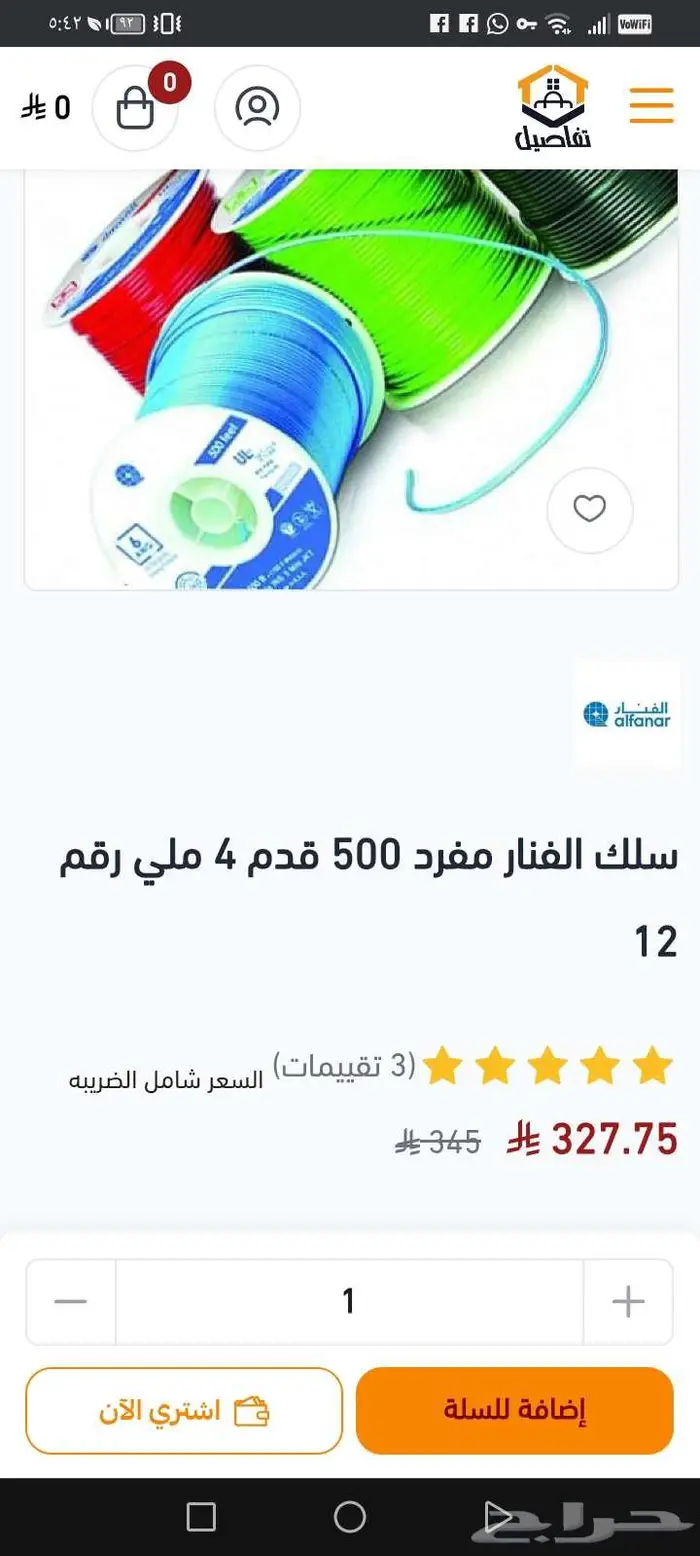 يوجد 2 لفة سلك جديده لم تستخدم. 4 ملي. من افظل الأنواع. بحره. طول اللفه 152 م. سعرها في السوق 350 ريال. البيع 250 ريال للوحده. تصلح لجميع انواع الافياش والمفاتيح ماعدا المكيفات 6 ملي.