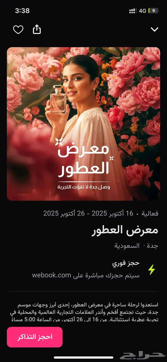 يوجد تذاكر معرض العطور لليوم وايضًا لـ يوم الاربعاء و والسبت و الاحد السعر قابل للتفاوض