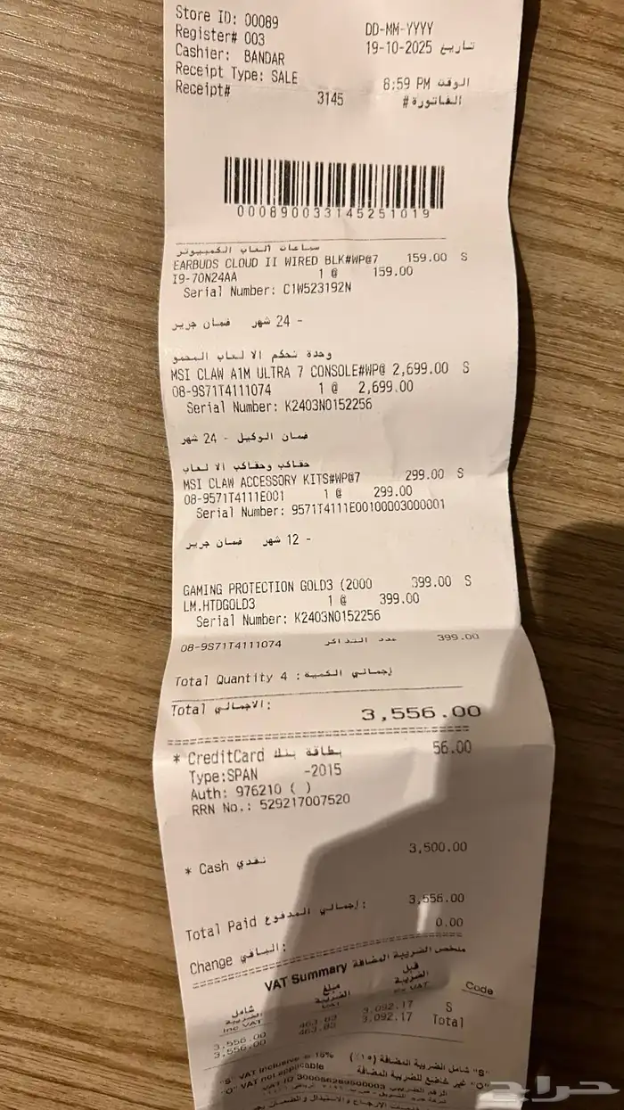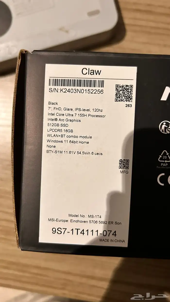 ASUS جهاز msi claw الجهاز جديد مشترية قبل 4 ايام من جرير وموضح بالفاتوره السعر مع شنطه وكرتونها وكرتون الجهاز وعليه ضمان لمدة 12 شهر بجرير لو انكسر او جاه شي تستبدله مجاناً والضمان سعرة 300 المواصفات موضحة بالصورة الرجاء عدم بخس السلعة الجهاز لم يستخدم ابداً على السوم اقل من 2000 لن ينظر اليها