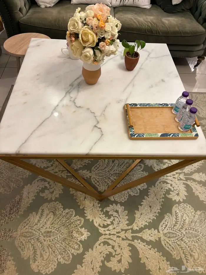 طاولات مجلس رخام طاوله كبيره بالنص وطاولتين عالسوم