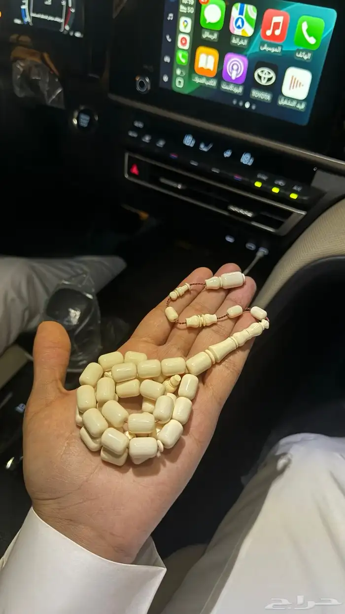 مسباح زبدة باليد راهي ويملى اليد بصمه عموديه واضحة من راس التمليكه الى خرزة القفله