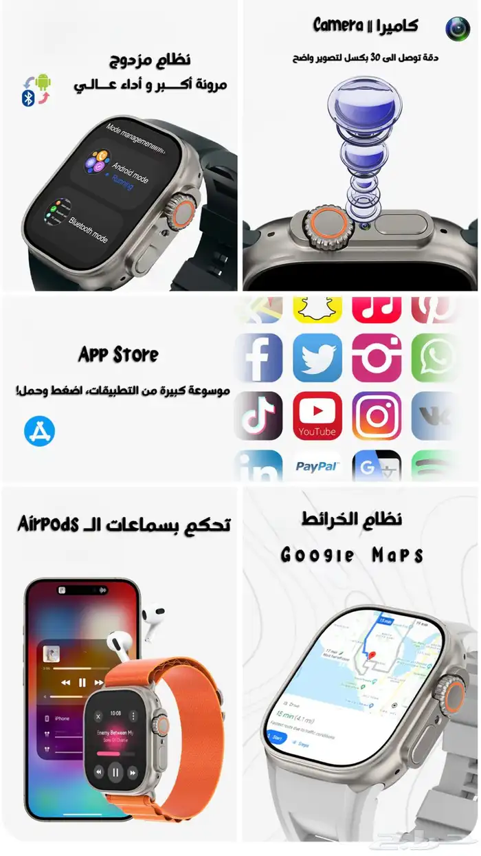 بعد شهور من انتقاء الأفضل وفرنا لكم لأول مرة ساعة إلترا تأتي بكاميرا ومنفذ شريحة، نظام متكامل أفضل ساعة إلترا سعر وجودة ومواصفات تقنية عالية وفخامة .
