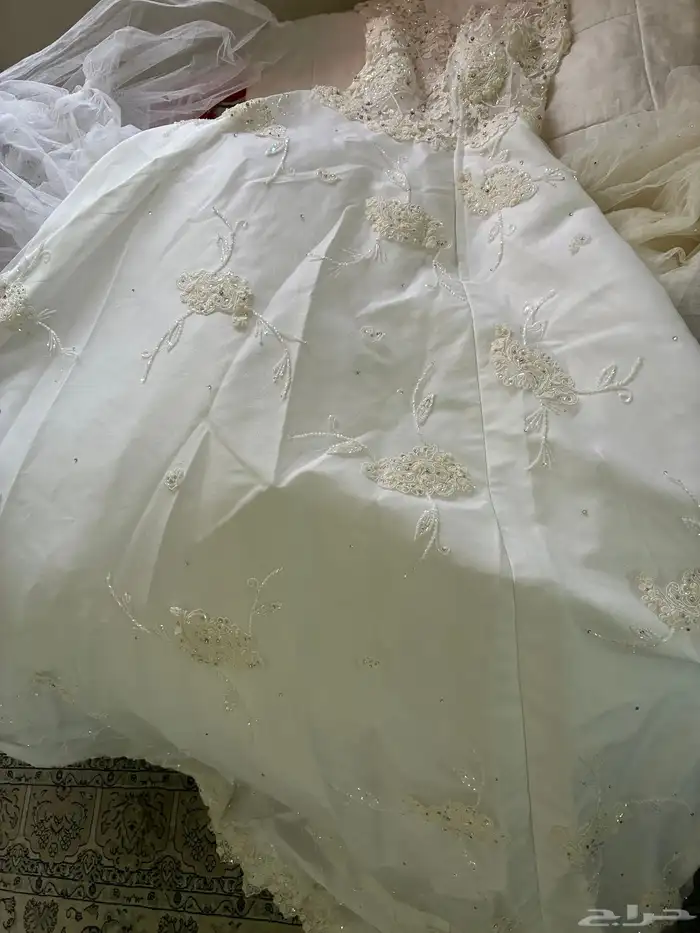 فستان زفاف مستعمل للبيع يشمل طرحة مطرزة + جيبون منفصل السعر 300 قابل للتفاوض