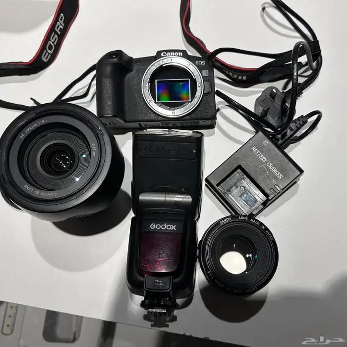 للبيع عدة تصوير كامله مكونه من كاميرا كانون RP ميروليس ومحول عدسات من EF لـ RF وعدسة 1.4 50 وعدسة 24-105 F4 وإنارة SK400ii وفلاش سبيد لايت tt685 العده كامله نظيفه واستخدامها خفيف على السوم