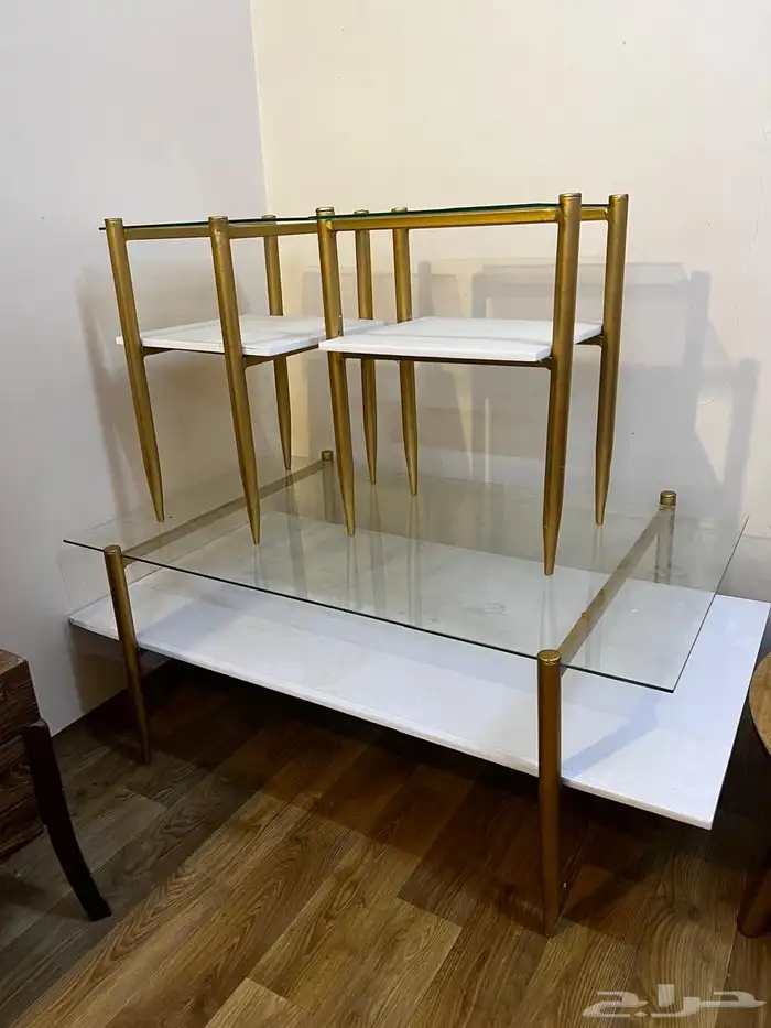طاولة قهوة كبيره و معها طاولتين خدمه شبه جديدة